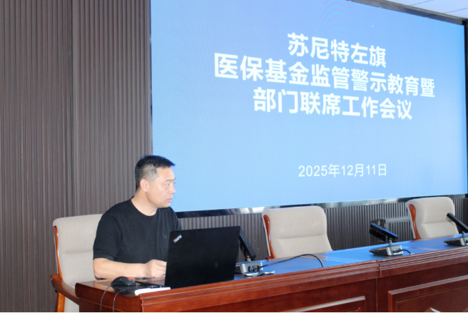 ??? 為進一步深化醫保基金管理突出問題專項整治工作,嚴厲打擊欺詐騙保、套取醫?;鸬冗`法行為,切實筑牢醫?;鸢踩谰€,12月11日,蘇尼特左旗人力資源和社會保障局聯合旗市場監督管理局、衛健委、公安局,召開全旗醫?;鸨O管警示教育暨部門聯席工作會議。